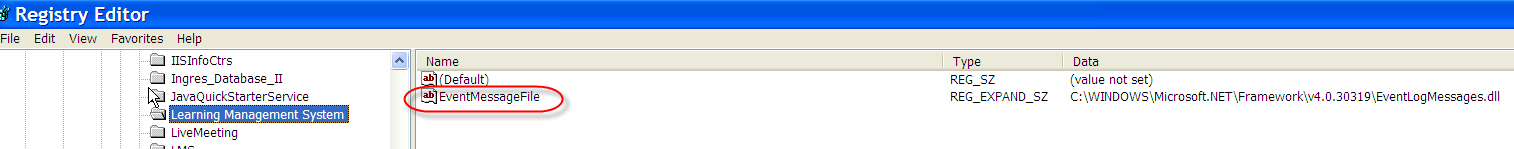 1. Open regedit and go to HKEY_LOCAL_MACHINE\System\CurrentControlSet\Services\Eventlog\Application\Learning Management System.