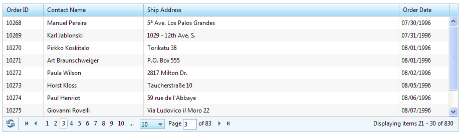 Telerik has ASP.NET MVC extensions which I think is free and cool. To get the Telerik paging working in my MVC application I install Telerik MVC Extension nuget using Visual Studio 2010 NuGet Package Manager. Then I configured the controller, view and off you go. I got something like this.